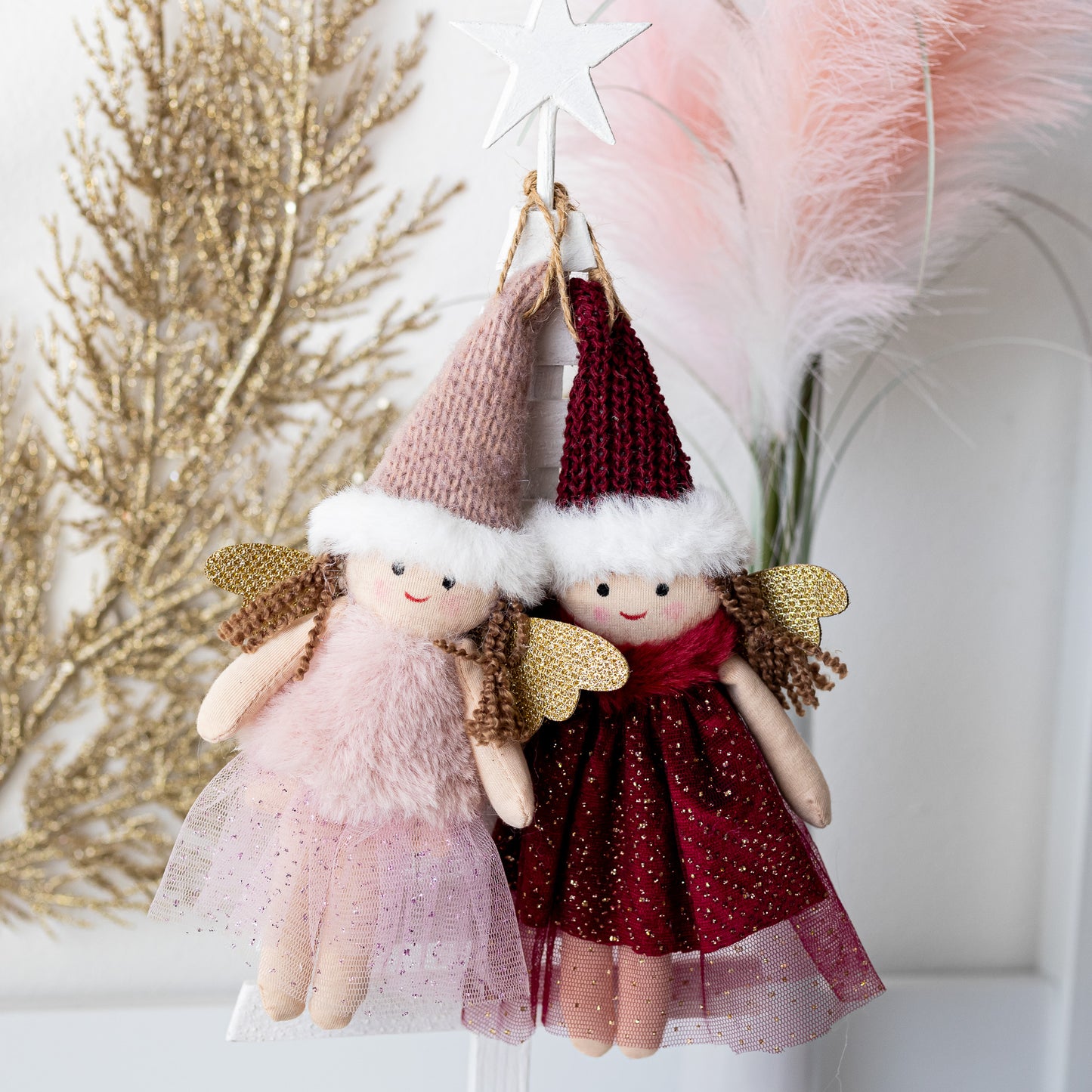 This Angel hangs beautifully and pairs well with the Pink Hanging Fabric Glitter Angel